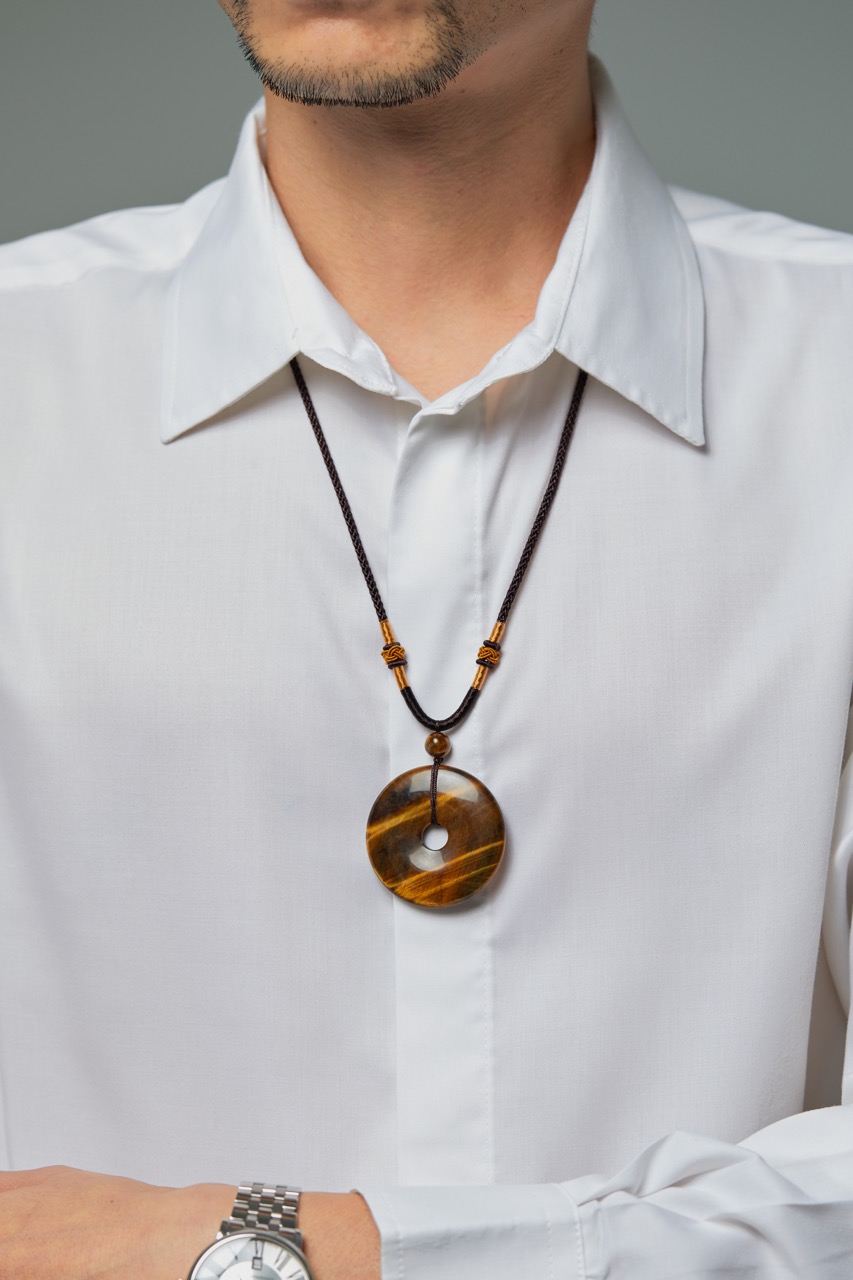 屬猴的陶文老師說他開年後短短一個多月已經摔了三次,後來戴上平安扣才終於沒有再摔。所以老師很喜愛平安扣,現在老師身上總共戴了三個虎眼石平安扣!